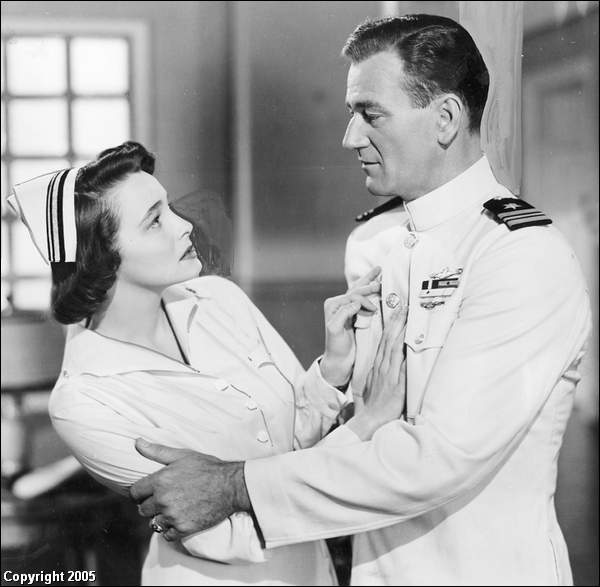 [Operation Pacific (1951)](워너 브러더스에서 정식 출시한 한국판 DVD 제목은 [존 웨인의 진주만]. 스카이시네마에서는 --; [남태평양 기동작전]이라는 제목으로 출시)의 한 장면인데, 이 영화에서 듀크는 정말 해군 옷발의 극한을 보여주신다. 미모가 절정이시던 무렵이기도 하고.