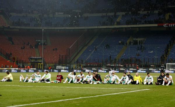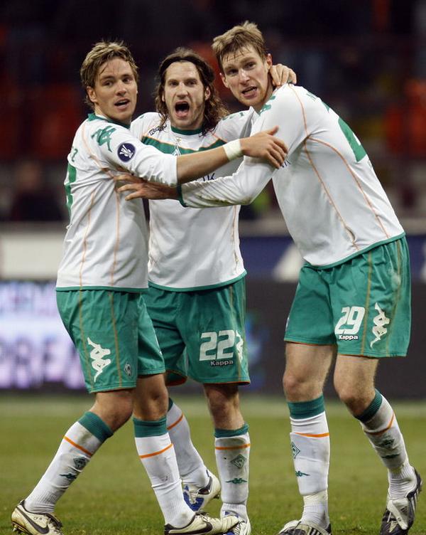 흑백에다 세로줄이 심하게 나오는, 3분 쯤 지연되는 중국 방송 인터넷 중계로 후반을 봤다. 라디오브레멘 인터넷 라디오 중계 켜 놓고 보는데, 고유명사 빼고 유일하게 알아들을 수 있는 단어, Tor!!! 이 한 마디에 모니터에 달라붙어서 봤다. 피사로 첫 골 들어가는 거 보니 눈물이 핑 돌고 두번째 골 들어가고 샤프 감독님이 펄쩍 뛰시는 거 보니 정말 눈물 났다. 바이에른 뮌헨 원정에서 0:5로 앞서고 있어도 펄쩍 뛰시기는 커녕 웃을까 말까 하시는 양반인데. 산 시로 원정에서 2:0으로 뒤지다가 2:2로 쫓아갔다는게 너무 기특하고 고마워서 이젠 져도 여한이 없다는 생각까지 했다 ㅠㅠ 결국 2:2로 종료, 원정 다득점으로 브레멘이 16강에 진출. UEFA컵 16강전에서 광속탈락할지도 모르고 형편없는 리가 성적 때문에 걱정이 태산이며 당장 이번 주말 바이에른과의 경기 결과에 따라 또 얼마나 우울한 심정이 되어버릴지도 알 수 없지만, 오늘은 그냥 기뻐하련다. 이 경기가 중계권료 문제로 독일 내 공중파에서 중계가 없었고 라디오브레멘의 인터넷 라디오 중계만 있었다고 하는데, 라디오브레멘 홈페이지 다시 가 봤더니 골 장면 음성 파일이 올라와 있더라. 1:0 durch Elfmeter von Pirlo 2:0 durch den 19-jährigen Pato 2:1 - Pizarro trifft per Kopf 2:2 - Pizarro köpft Werder ins Achtelfinale ![]() ![]() ![]() ![]() * 이건 빌트 가서 뒤적거리다가 발견한 밀라노로 떠날 때 베르더 브레멘 스탭/선수들의 짤막한 동영상인데, 샤프 감독님 정장 입으신 모습을 스타디움 밖에서는 처음 보는 듯 하여 갖다 둔다. # by 파이 | 2009/02/27 21:16 | Pastime